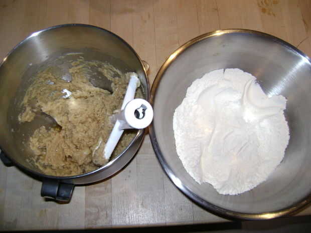 Agregar y mezclar los ingredientes secos a los mojados ingredientes 1/2 taza a la vez hasta que los ingredientes secos se han ido