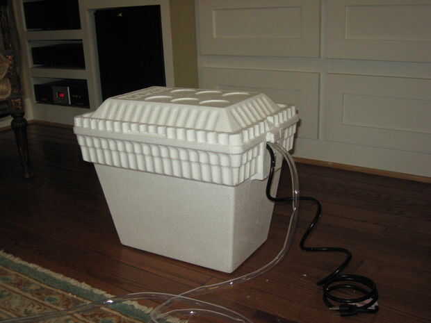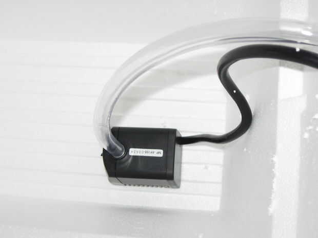 Luego, llevar el tubo a la bomba. Se conectan. Luego, corte el tubo por la mitad. Sujete la otra mitad del tubo a la línea de retorno y conducir a la nevera. Uso de abrazaderas de la manguera a la conexión entre el cobre y el tubo de vinilo.