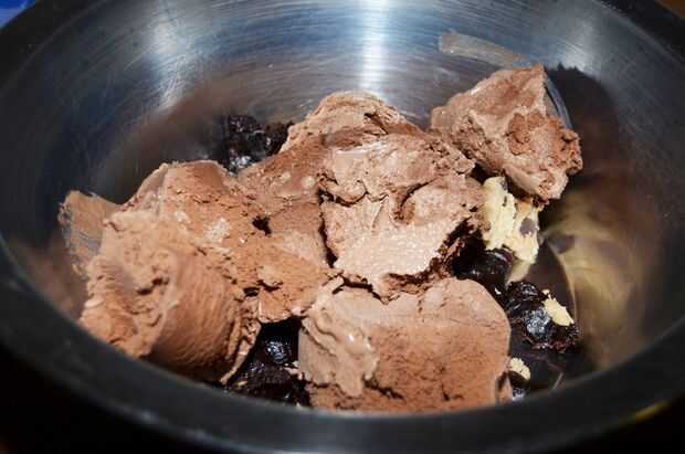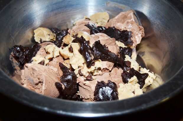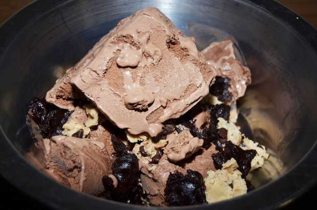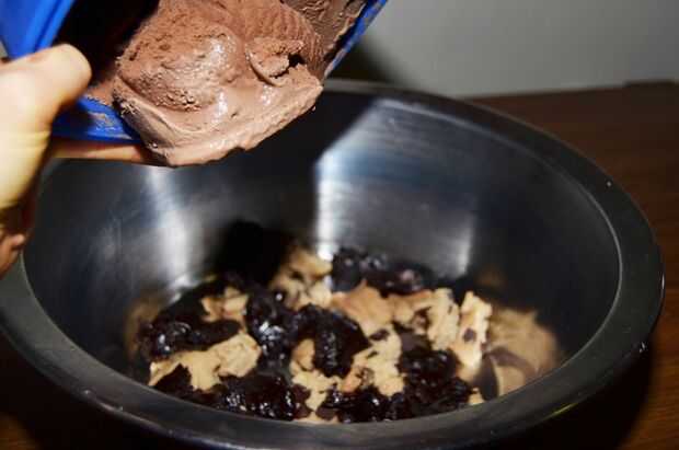 12. agregar la mitad del helado de chocolate en el tazón de fuente.
