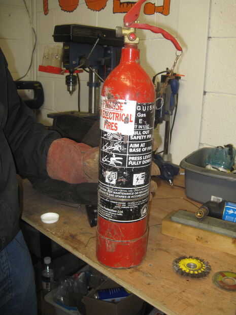 Embalamos los lados con el ingeniero ladrillos estamos utilizando la parte inferior del extintor para nuestro crisol.