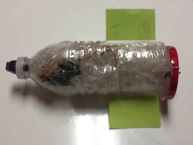 Aquí está una lista de piezas, aunque dependiendo de cómo lo haces usted tendrá que modificar la lista: 1 cámara desechable, 1 soporte de la batería AA que tiene en AA, 1 cambiar interruptor, 1 pulsador o interruptor momentáneo, 1 botella de agua vacía, Bubble wrap, utilicé cable de altavoz de calibre 24 porque es práctico, aunque muy probablemente podría utilizar un calibre más pequeño. Una lista de herramientas utiliza: la soldadura de una dremel para perforar un agujero en la tapa de la botella de agua, un soldador, núcleo de resina 60/40, tijeras, navaja, cuchillo del Exacto, manos. He utilizado un par casero aunque metal o humanos con unos alicates funcionaría.