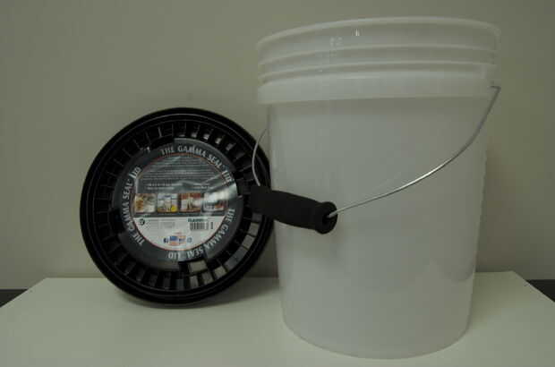 Recoger materiales y herramientas: los materiales que necesitará son los siguientes: 1 fuga construcción cubo con giro apretado una fuga en la tapa (estos se venden como productos separados), dos anillos de la cadena dominante, bicicleta dos cámaras o correas, un tubo de masilla de cuarto de baño de 100% silicona, 1 vinilo corte o mensaje dibujado a osos de desvío y 50 más pies de cuerda ligera de la mano. Home Depot tendrá todos los materiales necesarios para este proyecto excepto tubos interiores. No dude en usar otra cosa en lugar de tubos para las bandas o hablar con una tienda de bicicletas local para conseguir usado o dañado tubos. Las únicas herramientas que necesitas son: 1 hoja de afeitar o cuchillo, pistola de 1 masilla y un mazo o un martillo.