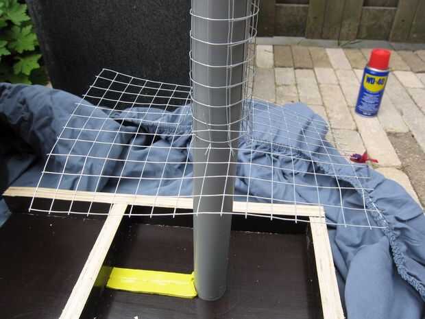 Usé malla metálica como refuerzo para el concreto de mi, y he intentado asegurarse de que el refuerzo de puentes los diferentes elementos concretos que me estaba haciendo. Hay acoplamiento del metal de la placa y malla metálica alrededor de la tubería de PVC.