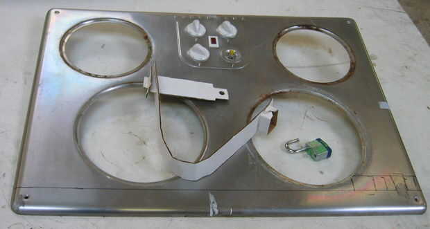La cerradura cartón parecía sobre derecho, así que rescatados algunos de acero inoxidable para hacer uno real. Quería algún pesado inoxidable que realmente sería difícil de cortar, pero todo lo que pude encontrar fue esta estufa. Como la cosa acabada se ve bastante sólida es probablemente suficiente. Compré un paquete de cuatro candados todos con la misma por $15 y ha llegado el momento de cortar el metal. He marcado los cortes y dobleces en el metal con un marcador permanente. Los pequeños rectángulos en la esquina inferior derecha son los cortes y dobleces para hacer la caja de guardia alrededor del candado.