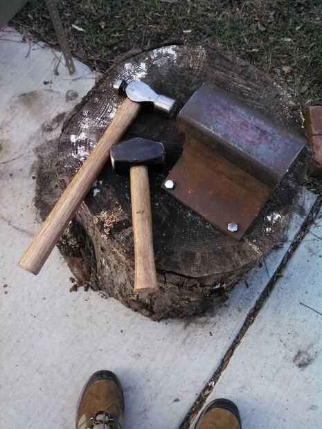 En cuanto al yunque, tengo un pequeño trozo de vía férrea para comenzar con. Nada grande, plana y metal deberían funcionar bien. No tiene que ser en forma de un yunque para trabajar. También, asegúrese de que tiene algo para sujetar el yunque, como un tronco grande. Sugiero que usted busca en Craigslist nada. Conozco que Puerto carga tenía un yunque pequeño de 15 libras en un momento dado. Si usted quiere tomar en serio acerca de herrería, tienes que poner algo de dinero tras un verdadero yunque. Se trabajan mucho mejor y permitirá tener más control, pero son muy caros.
