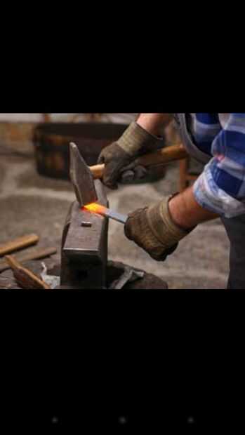 Inicio golpeando ese metal!!!!!! No sugiero que llevar siempre guantes ya que en el camino y pueden prenderse fuego. Pero es todo una cuestión de preferencia. También, el martilleo no es tan fácil como parece. Lleva meses incluso aprender a hacer bien y años para dominarlo.