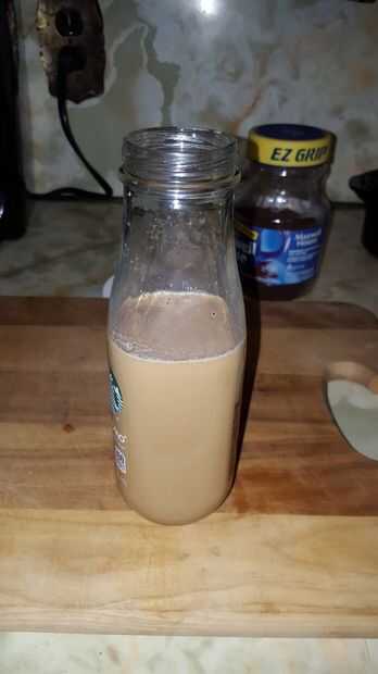 Ponga la tapa en y agite hasta que estén espumosos. Deje que la espuma colocar y añadir más leche hasta aproximadamente una pulgada desde la parte superior.