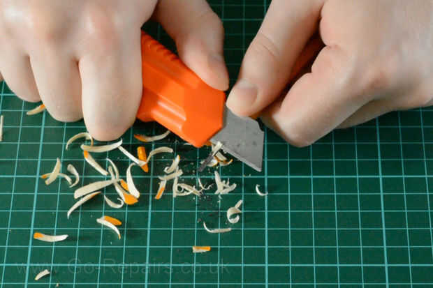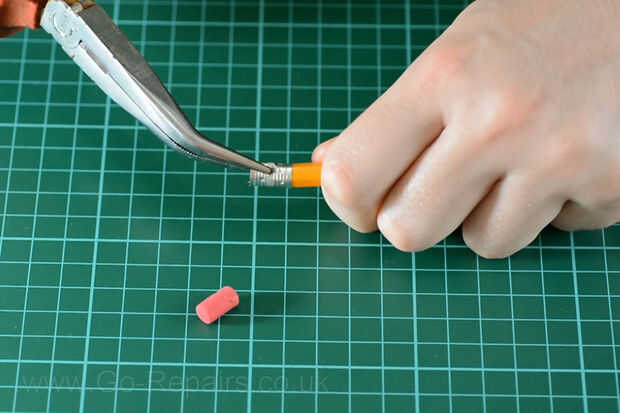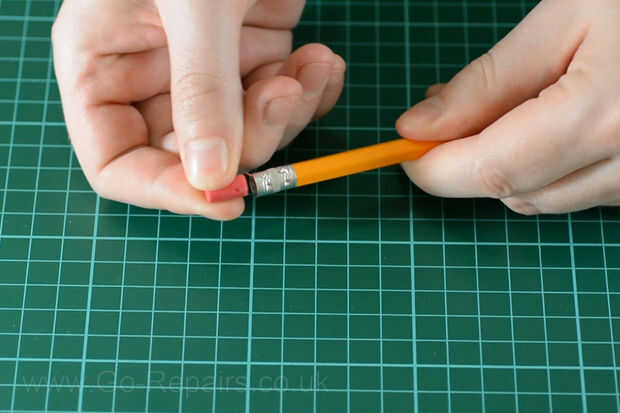 En primer lugar preparar sus lápices quitando la goma y el soporte metálico en la parte superior. Usando su cuchillo, desecho de la madera para exponer el grafito de carbono por debajo.
