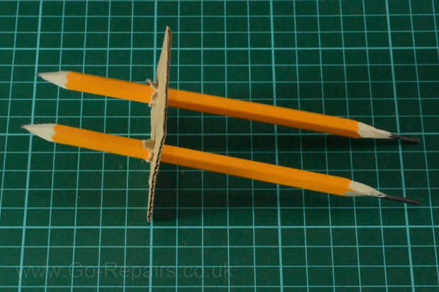 Cortar un trozo de cartón sólo lo suficientemente grande como para cubrir el recipiente. Ahora perforar la tarjeta para permitir que los lápices a través de él. Esto debe ser un ajuste ceñido y asegurar las sondas no están demasiado cerca de otra de forma que no entren en contacto.