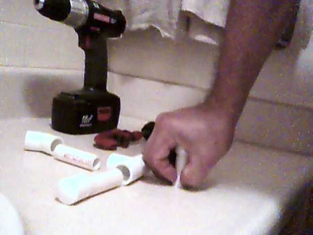 No hay nada que requieren gran precisión por lo que usted puede bastante mucho "eyeball" todo. Juego de palabras no exactamente. Primero corte dos piezas de tubo de plástico alrededor de 2 1/4 pulgadas de longitud. Insertarlos en las tapas y les asiento como van a ir. Asegúrese de que encajen completamente.