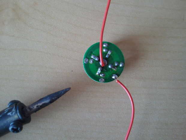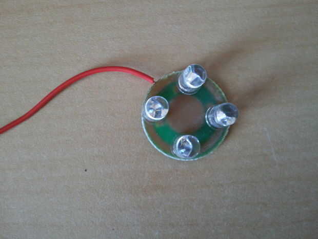 tuve un pequeño tablero del PWB redondo con LEDs de UV y tamaños correcto resistores SMD (dispositivo montado superficie) premontados. De lo contrario puede calcular con facilidad la resistencia requerida para la configuración de LED y la batería. Aquí hay dos calculadoras que simplemente sus parámetros de configuración de entrada y calcular automáticamente la resistencia necesaria. Si utiliza más de un LED UV alambre en serie con el resistor y añade la tensión directa del diodo del LED's para el cálculo (la segunda más detallada calculadora hará el cálculo para usted).