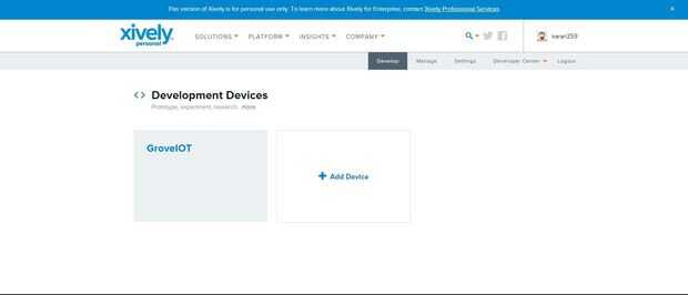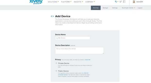 Un dispositivo es un bloque básico que va a utilizar para enviar los datos del sensor a Xively.