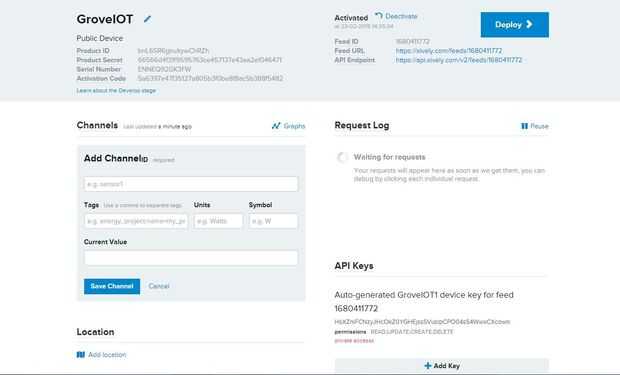 Agregar todos los sensores que desea obtener datos de los canales. Es necesario proporcionar el nombre del canal que se utilizará para enviar datos a Xively.