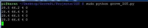 Copia la API key y ID de alimentación del dispositivo página y actualización en el script de GrovePi IOT. y ejecutar el script: