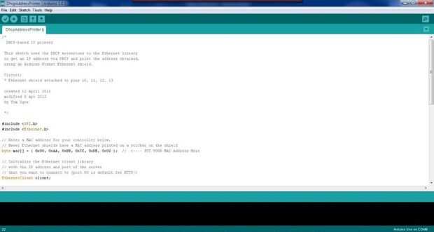 Es la dirección mac de este escudo de Ethernet (0x90, 0xA2, 0xDA, 0x0D, 0x78, 0xE0) después de poner esta dirección en el programa y haga clic en cargar.