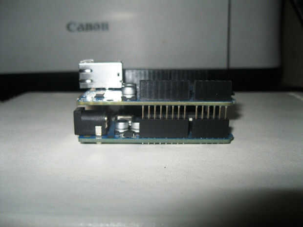 Toma Ethernet shield y Monte en arduino uno al igual que en las fotos dadas del tablero pero ten cuidado los pasadores metálicos Ethernet shield son muy sensibles así que hacerlo lentamente.