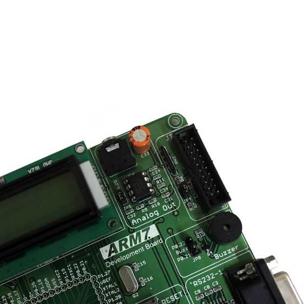 la Junta de desarrollo de ARM7 viene con LPC2148 microcontrolador de brazo. El microcontrolador puede programarse a través del puerto serial usando el gestor de arranque serial de la en-viruta. La Junta cuenta con varias interfaces disponibles a bordo como LEDs, pulsadores, entrada analógica, doble RS232 puerto, EEPROM, amplificador de potencia, conector USB, timbre, carácter LCD y dedicado conectores a plug-in de un Sensor de temperatura, sensor de medición de distancia, acelerómetro y una XBEE wireless dispositivo. También se proporciona un conector JTAG para programación y depuración del microcontrolador. El tablero puede ser alimentado con una fuente de energía externa como un adaptador o puede ser alimentado mediante el puerto USB en el equipo. La Junta de desarrollo de ARM7 ha sido diseñada para un uso óptimo de los periféricos de la en-viruta y las interfaces a bordo para crear una variedad de aplicaciones.Enlace al producto: http://bit.ly/arm7_dev_brd