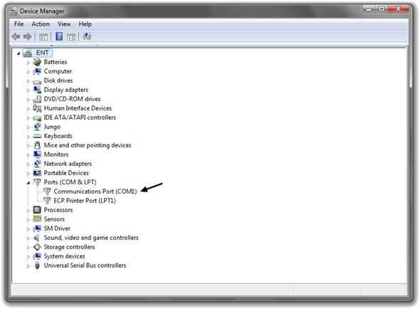 • Abra el administrador de dispositivos y encontrar el puerto COM desde el árbol de dispositivos para saber su número de puerto COM como se muestra. Seleccione el puerto COM correspondiente en el desplegable lista en la herramienta Flash Magic. En este caso es el COM1.