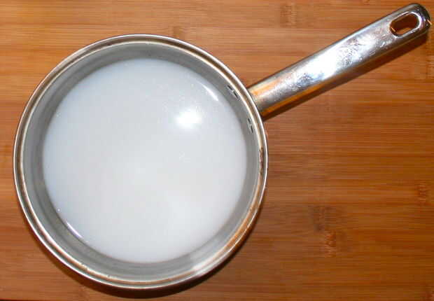 Para dos tazas de té Vierta 1 taza de agua y 1/2 taza de leche de coco en una olla de acero inoxidable, poner a hervir antes de agregar una bola de té y luego baje el calor y cocinar a fuego lento durante 3-5 minutos.