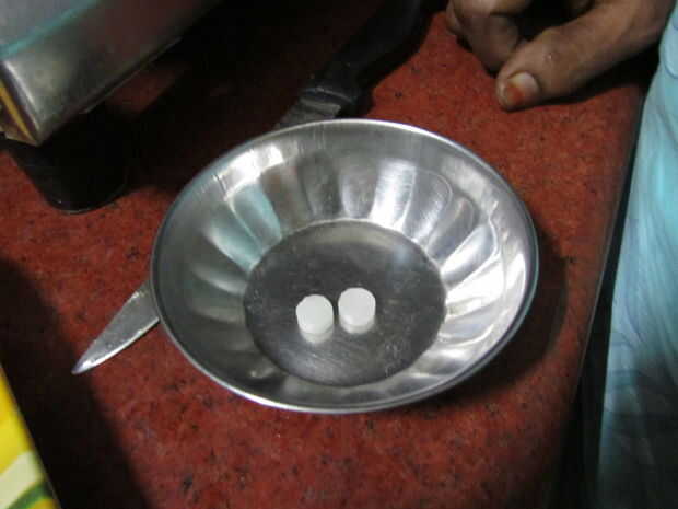 • Alcanfor: Alrededor de 100 miligramos. (Conseguimos alcanfor en tabletas cada una pesa alrededor de 50 miligramos. Por lo tanto, he tomado dos pastillas)
