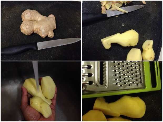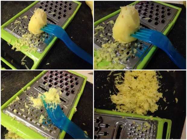 Toma un tenedor, una pizca en el pequeño pedazo de jengibre. Ahora la rejilla moviendo hacia arriba y hacia abajo la horquilla con el jengibre. que no te lastime y no pierda demasiado :)
