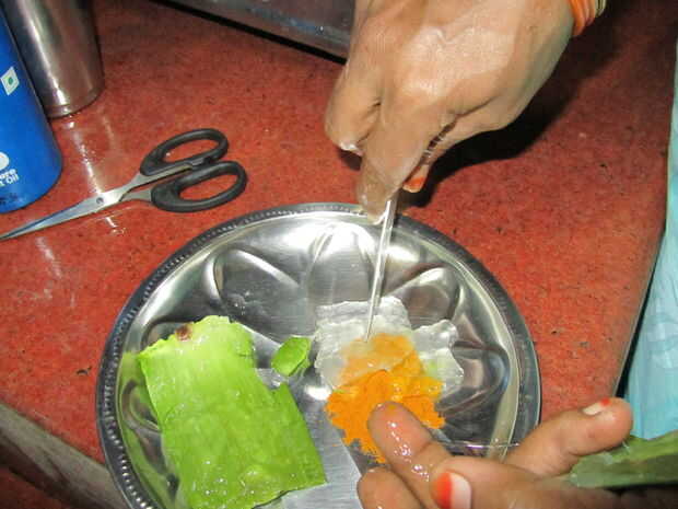 Aplicar esta pasta sobre quemaduras. Esto ayudará en la curación de las quemaduras y también eliminar las marcas de quemadura de la piel