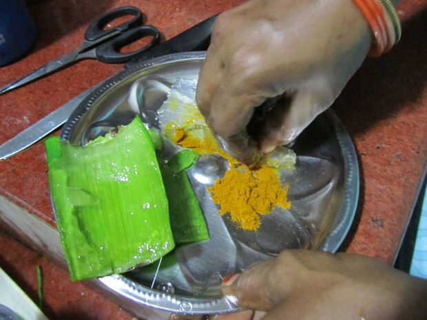- Limpiar la hoja de aloe vera y eliminar piel y partes
