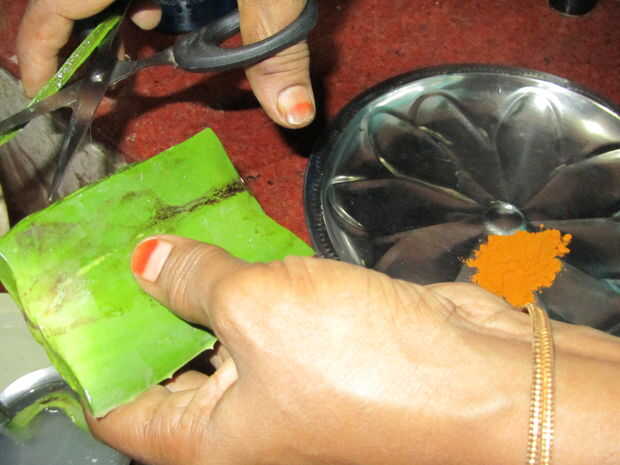 - Mezclar el gel con cúrcuma para hacer una pasta fina