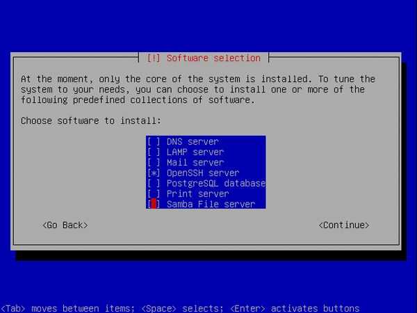 -Barra espaciadora prensa (verá un * al lado de "servidor de openssh")