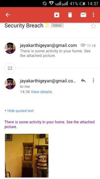 Ahora, si le coloco la configuración enfrente de la puerta de su casa y ejecuta su python de código y sale de su casa. Si alguien abre la puerta, usted recibirá una alerta de correo electrónico.