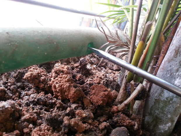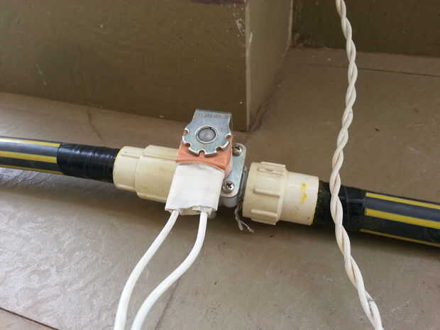 Conectar el tubo a la fuente de agua. Esto puede hacerse usando el conector de corriente y una pinza. Asegúrese de que ni una sola gota fugas, no queremos malgastar el agua. Uno de los principales propósitos de esta disposición. Conecte el otro extremo al solenoide, puede ser que necesite utilizar un conector, pegamento de PVC y cinta. El solenoide tiene una flecha hacia la dirección del flujo de agua. Asegúrese de que conectado el camino correcto. Una vez que esto está asegurado, suelte el agua del grifo para asegurarse de que no haya fugas. A continuación, conectar el tubo al otro extremo del solenoide y colocar el tubo de tal manera que funciona cerca o sobre las ollas. Con un destornillador con una cabeza puntiaguda, hacer agujeros en los lugares requeridos. Asegúrese de que el agujero no es demasiado grande.