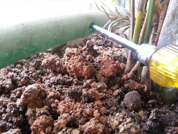 El extremo de la tubería de agua se ha colocado de tal manera que se levanta por encima del nivel de las ollas. Así que no hay necesidad de cerrar el extremo de la tubería,