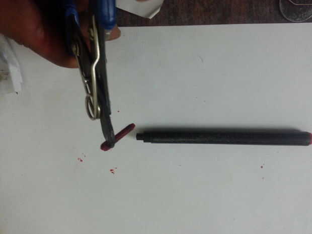 He utilizado algunas plumas de dibujo viejo como emisores, como se muestra en las fotos. Quitado el nip de los corrales y en una parte del otro extremo. Esto puede ser fácilmente empujado dentro de la abertura constituida el destornillador. Podría ser diferente para la configuración, por lo tanto un plan como corresponde.