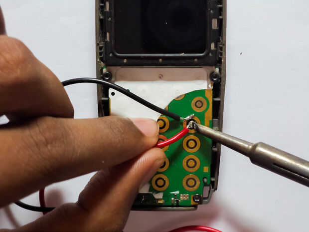 Soldar un cable rojo a la + ve terminal y un cable negro a la terminal de ve-.