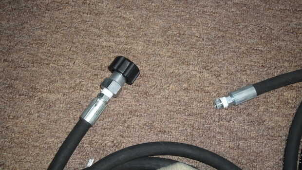 (1) lavadora a presión 22mm montaje (utilizamos una hembra porque teníamos Mangueras compuestas, debe usar una rosca macho si tiene una 22mm en la manguera de la lavadora de presión)