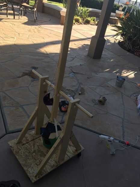propuestaNuestro objetivo es hacer un trebuchet capaz de lanzar una bola tan grande como una pulgada y media a través de 50 pies. Sólo podremos utilizar madera o tablero de fibra pero no cualquier tipo de metal. Cada pieza será molido hacia fuera y m