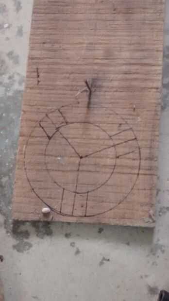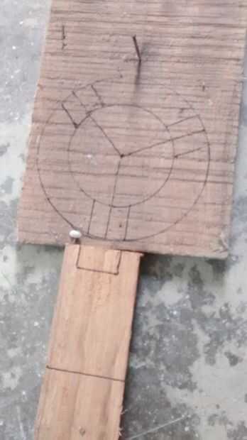 segunda imagen. Dibujar cuadro de 1 cm en el segundo de madera por lo que puede caber en la longitud de 5cm .cut circular de madera de tres piezas de madera. Todos estos cortar y lijar bien.