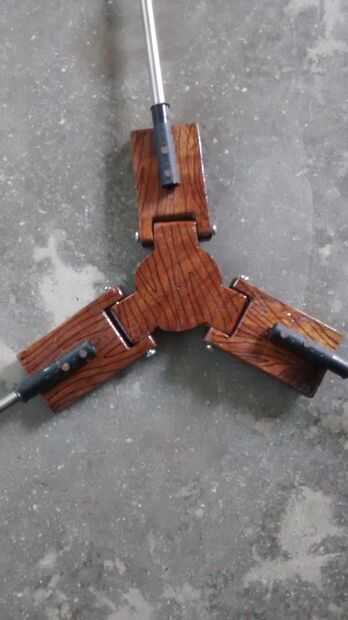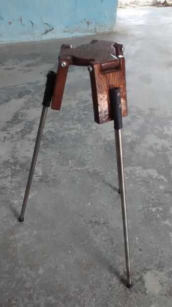 Pintar las piezas de madera y deje que se seque. Colocar la pierna de varilla en pata de palo y clávelo o atornillar. Hacer un agujero en el centro y colocar un pero y el perno de su tamaño. Ahora siéntese detrás de él y admirar tu trabajo. Disfrutar.