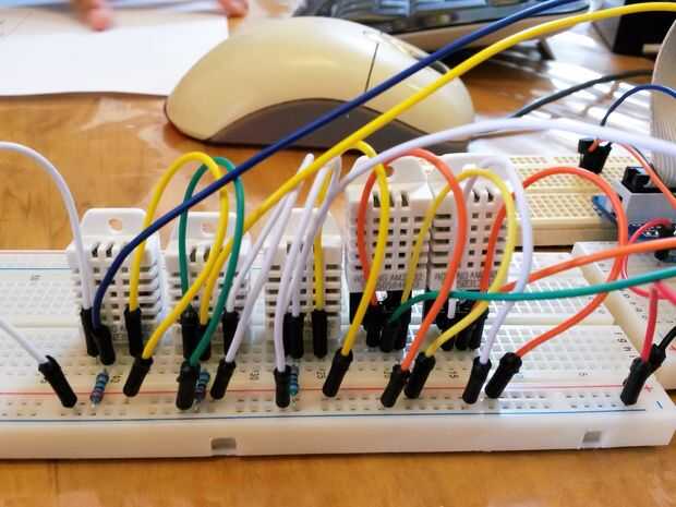 Los sensores necesitan una resistencia de pull-up (1k - 5k Ohm – uno por sensor) entre los datos y Vcc. Estos sensores pueden tener un sensor en una línea de datos.