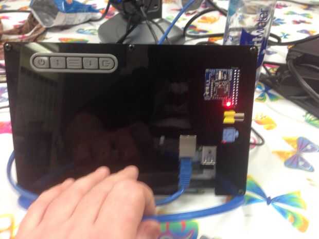 Teníamos uno de la original frambuesa Pi B + con una pantalla de HD conectada así que decidimos usar este como el dato central del punto a mis padres. Esto tiene una de las unidades Ciseco información adjunta y recibida de uno o más remitentes, recopila los datos y entonces envía la información a través de una conexión WIFI a internet.