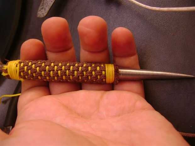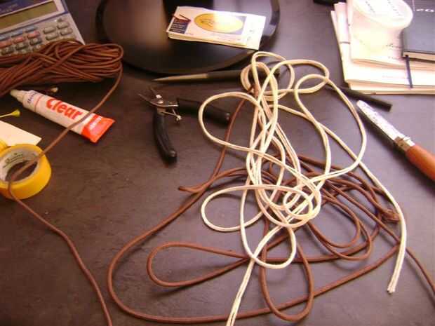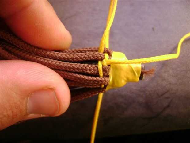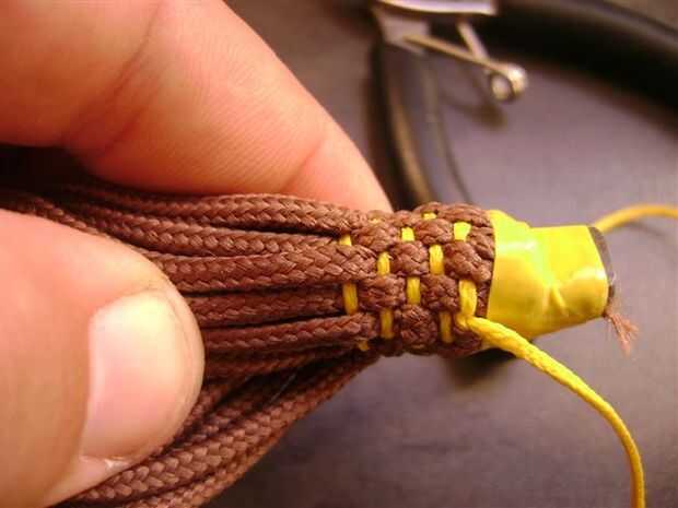 Ejecutar una pequeña cantidad de pegamento alrededor de donde va a ser el comienzo, líneas de trama de pegamento en su lugar en la curva dejar secar y envolver un par de veces en cinta aislante.