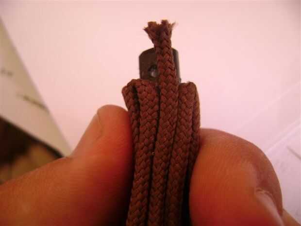 Tire el nudo para que la línea se mueve bajo los azotes y por el otro lado, ajuste cuidadosamente.