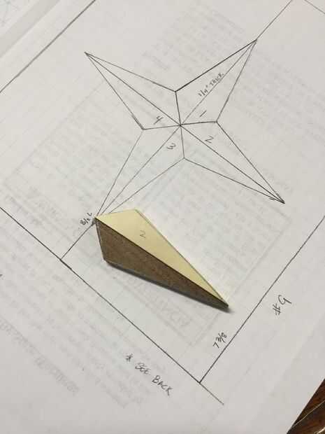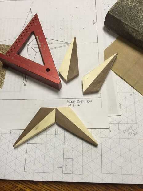 No quería una tapa de aburrido, por lo que he encontrado una idea de embutido. (Me debo haber quedado con un aburrido jajaja tapa) este embutido estrella fue todo un reto! Como un principiante todo es... Me sacó las dimensiones de mi tapa en papel cuadriculado y luego utiliza los cuadrados para dibujar las formas de incrustación. Aquí utilicé nogal y arce, realmente no medí yo sólo tiro de la cadera.