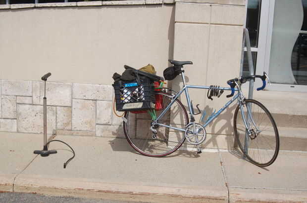 Tengo este plano en Lynnfield, Massachusetts, a siete millas de la tienda de bicicletas más cercana, mientras ciclismo a Montreal desde Boston. Siete millas es una caminata larga!