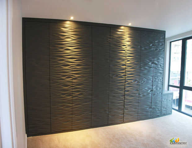 Inmenso armario equipado con puertas de estilo 3D y gabinete pequeño. Suministrado, instalado y pintado por arte Carpentry en Brentford,London.Order ahora equipada armarios aquí: http://artcarpentry.co.uk/ arte CarpentryTel: + 44 74 00931355E-mail: Oficina