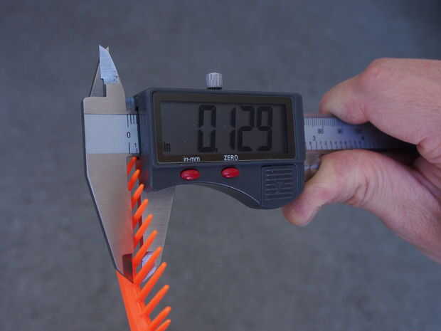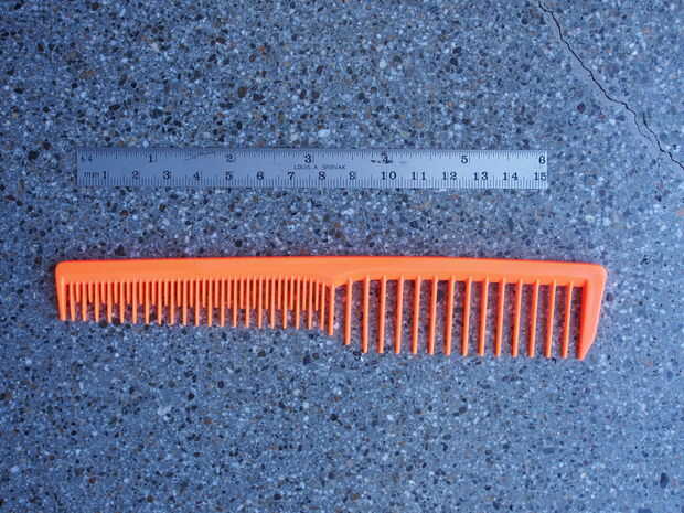Mi peine base tenía dientes que estaban alrededor de una pulgada de largo. Estaban 0,050" de ancho y 0,10" de espesor en la base. Las lagunas eran aproximadamente dos veces la anchura de los dientes.