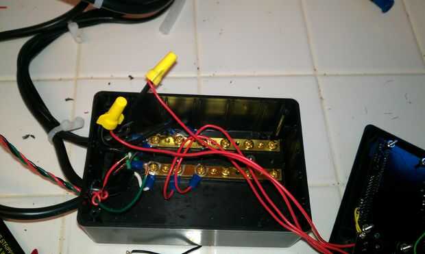 Fije un cable de un relé a un cable de uno de los elementos de calefacción utilizando conectores terminales tornillo. Repita esto para las restantes SSR y elemento de calefacción. Luego fije los cables restantes de cada SSR individualmente a un cable que viene del bloque de terminales.