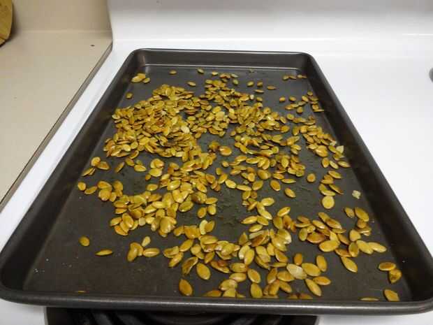Tenga cuidado de quitar las semillas del horno (que están caliente) y dejan enfriar.