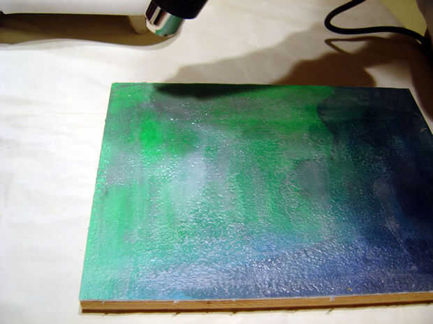 Este paso asegura que la cera ha consolidado a la lona y tabla que está trabajando.