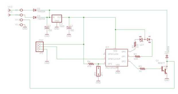 El PIC y el ID-12 son accionados por un regulador de 5v 7805 por algunos caps de filtrado básicos. La foto es en un bucle sin fin en este momento, leyendo los datos disponibles de la ID-12. Una vez que se lee una etiqueta de tarjeta, compara la cadena con hasta 10 etiquetas tiene en EEPROM. Si uno coincide, activa el transistor que a su vez activa el relé y el programa se detiene. Si no hay ninguna coincidencia, mantiene esperando datos. El LED bicolor indica el estado.
